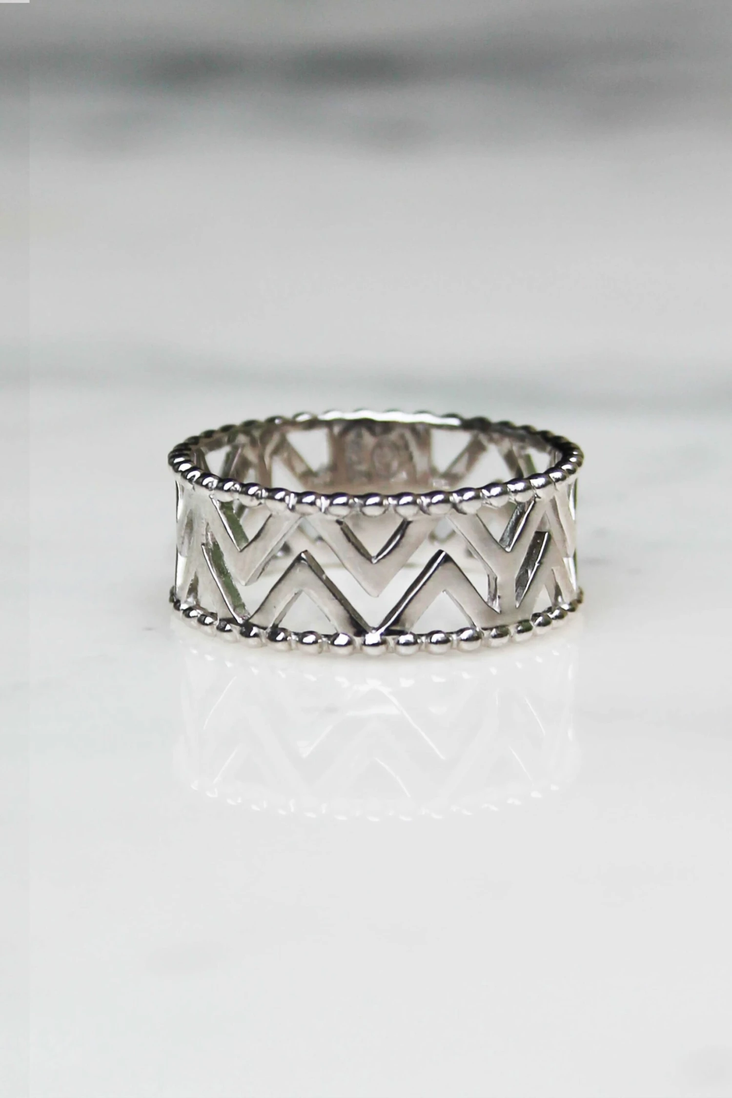 Le design Cuzco se décline ici en version bague ! A la fois moderne et ethnique, la découpe et les jeux de transparence de la bague Cuzco en feront à coup sûr une pièce qui se démarquera dans votre boîte à bijoux.