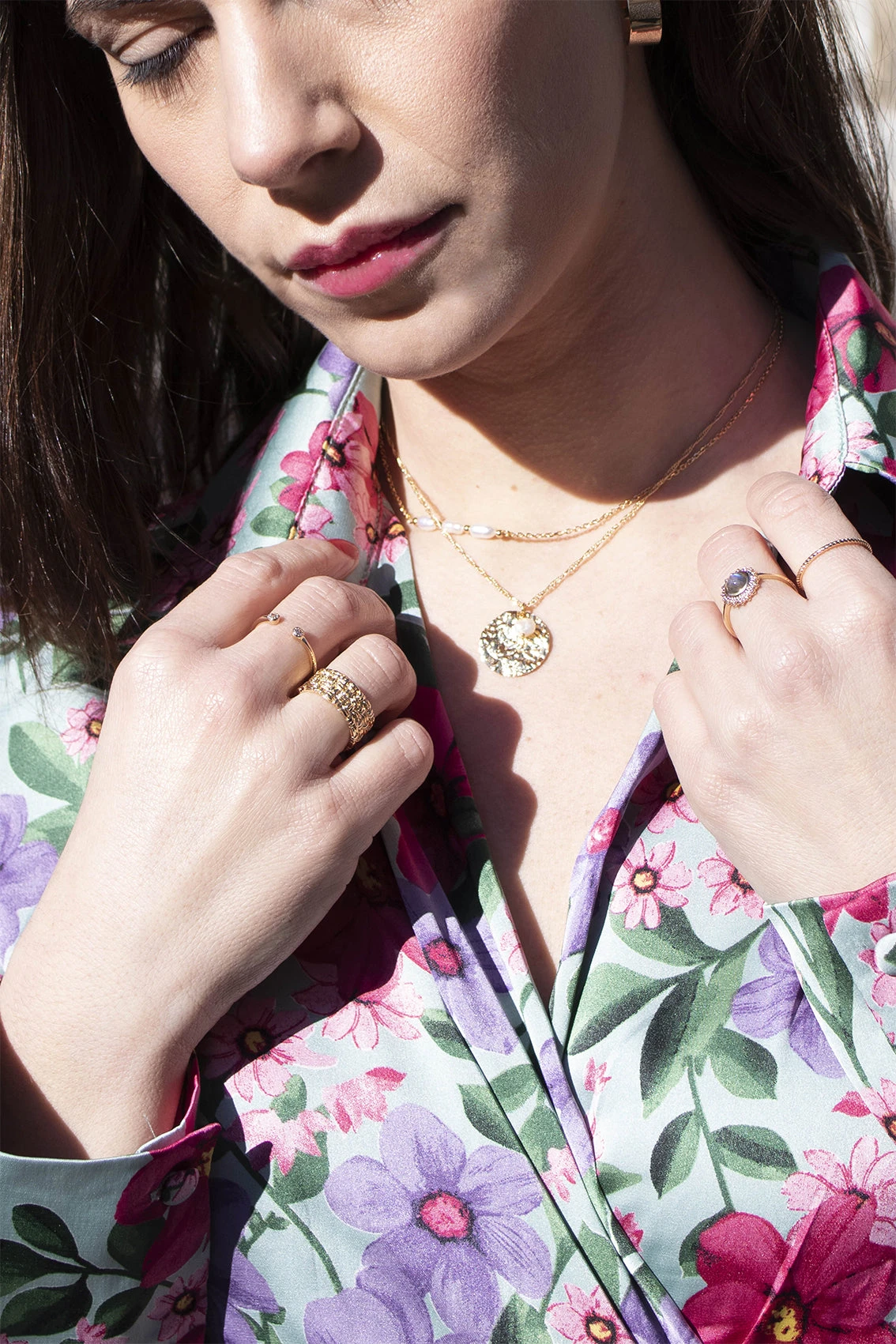 Gabrielle, une bague particulièrement élégante, au métal texturé façon tweed. Un nom en hommage à la reine du tweed, Mademoiselle Coco…