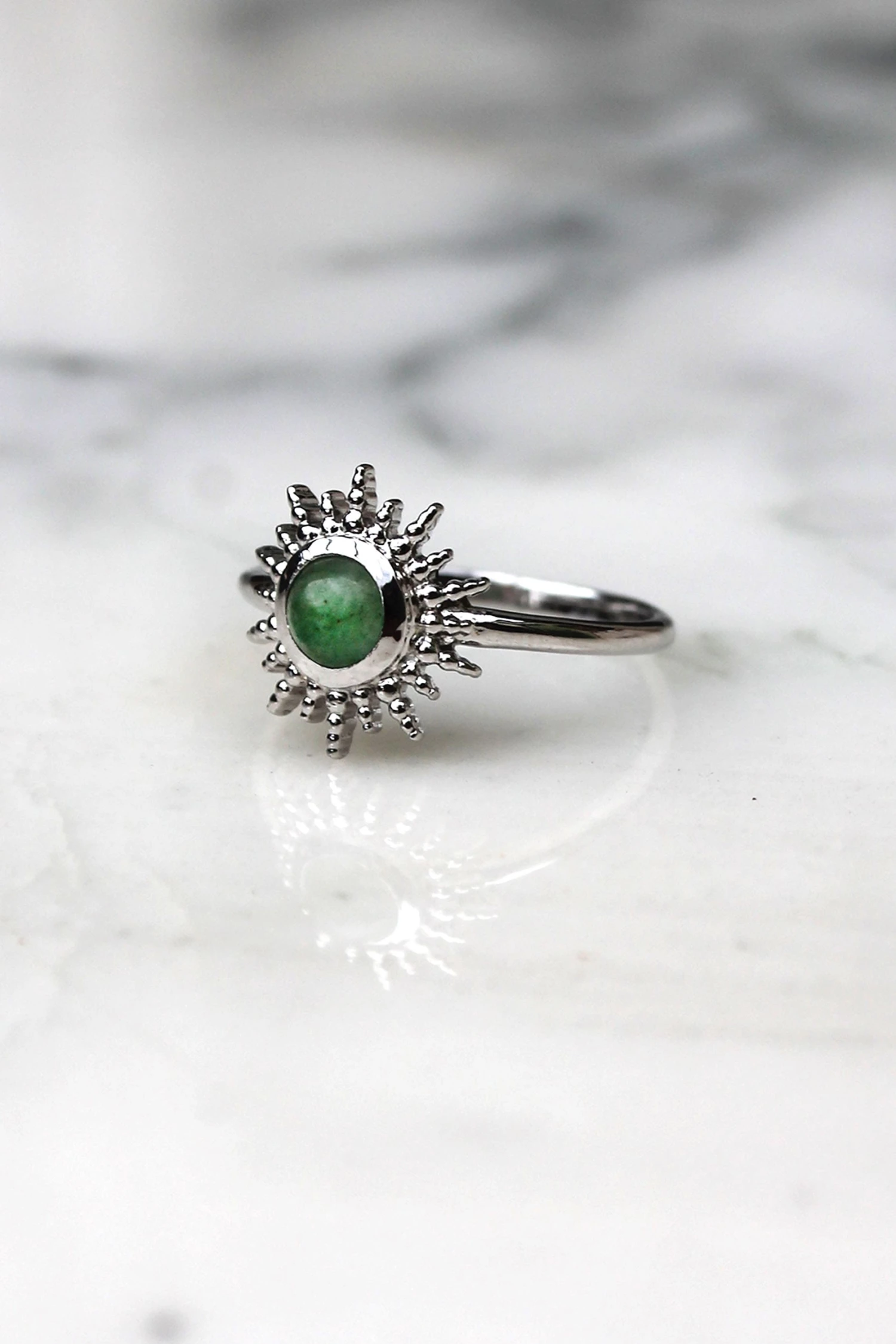 - Bague en argent 925 rhodié et aventurine
