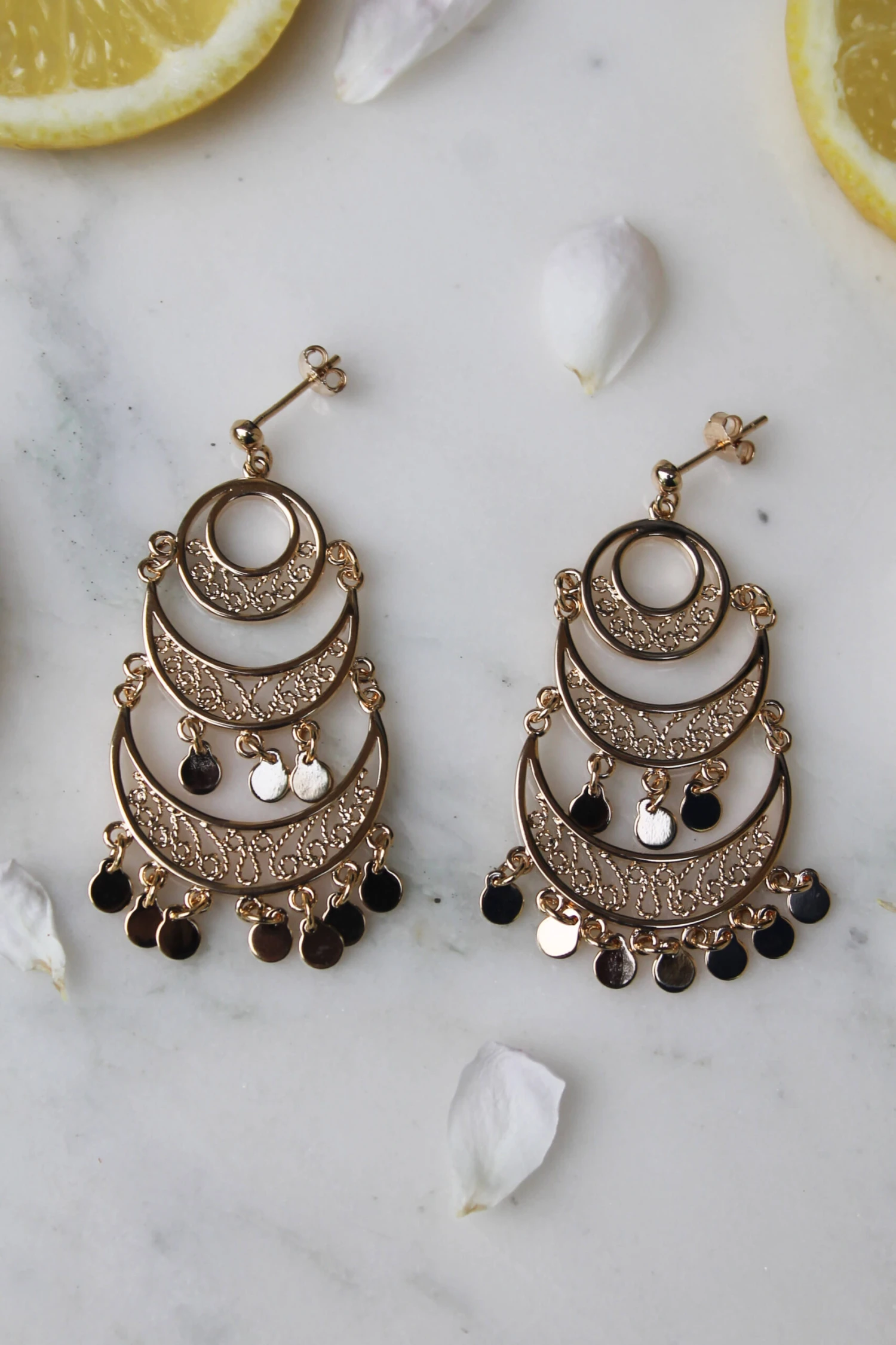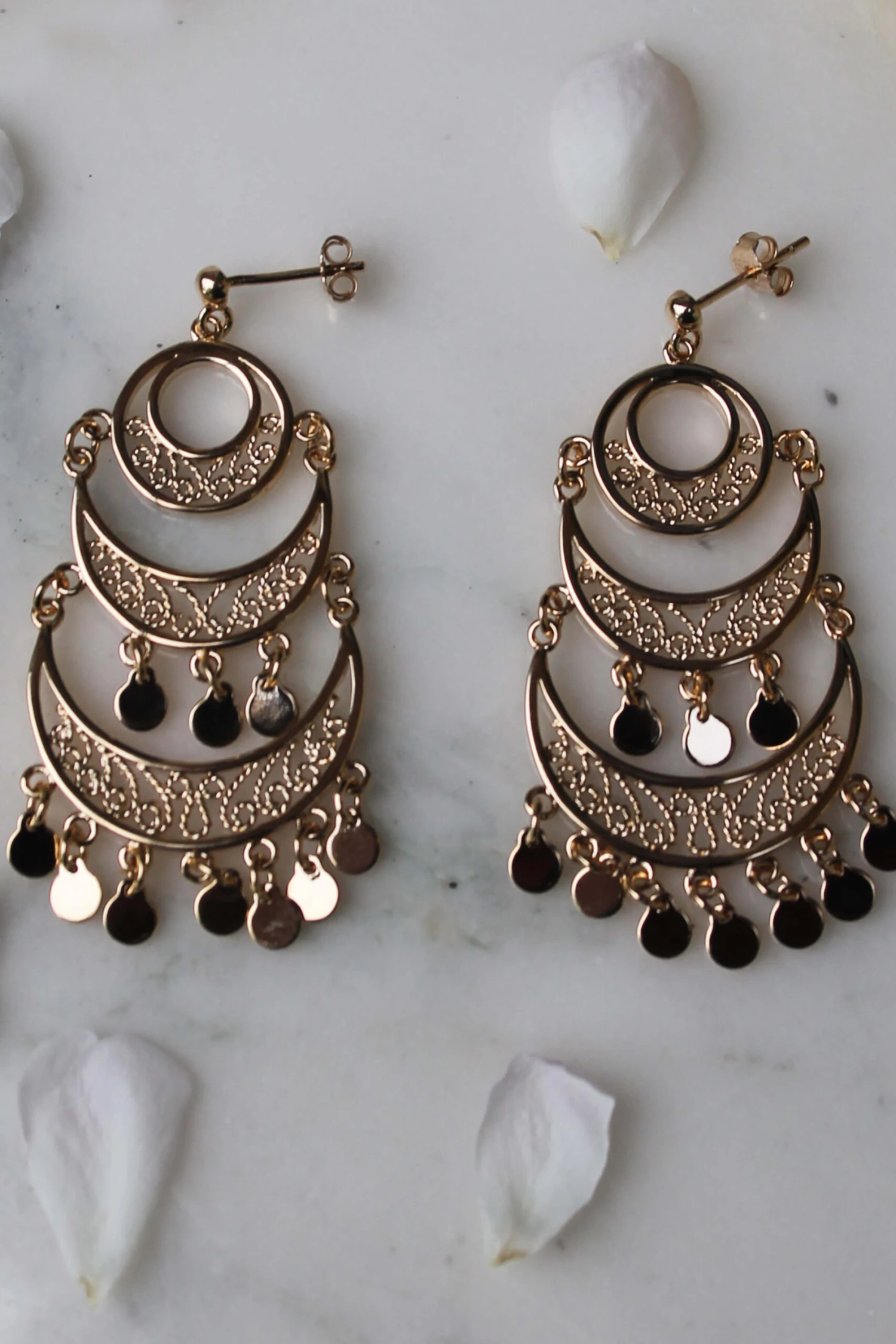 De l’or travaillé comme de la dentelle, de jolies pampilles constamment en mouvement : les belles et imposantes boucles d’oreilles Byzance feront de vous une Shéhérazade des temps modernes !
