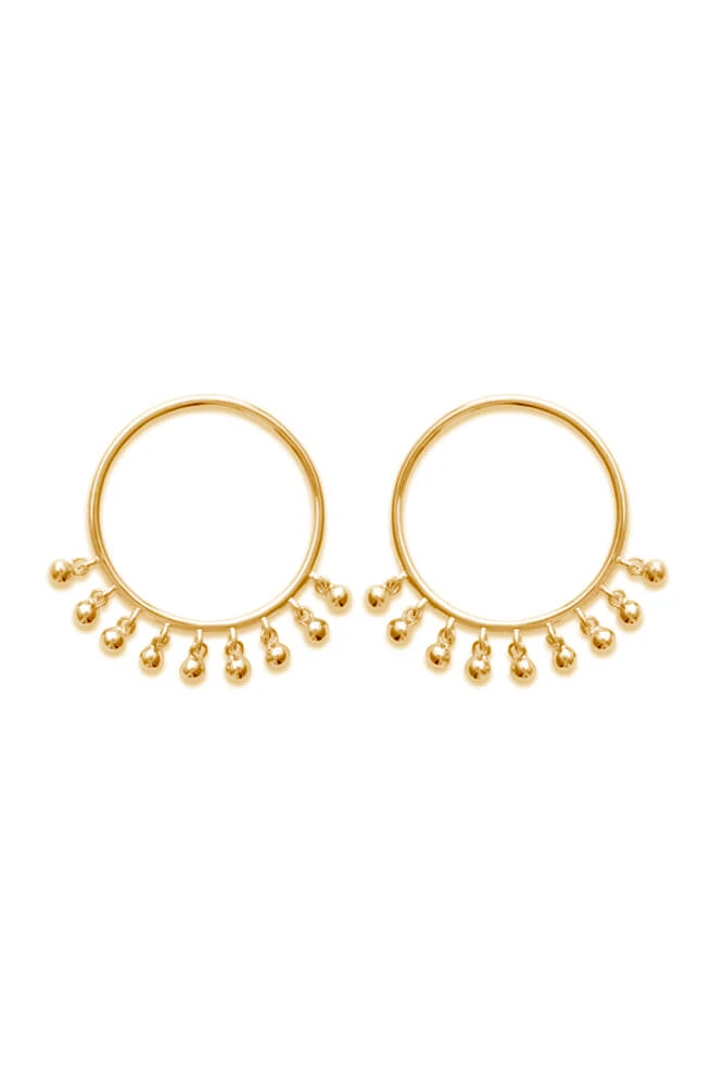 Les boucles d’oreilles Rosea se démarquent par leur design très graphique. Fines et ornées de petites pampilles, elles compléteront vos tenues à merveille !