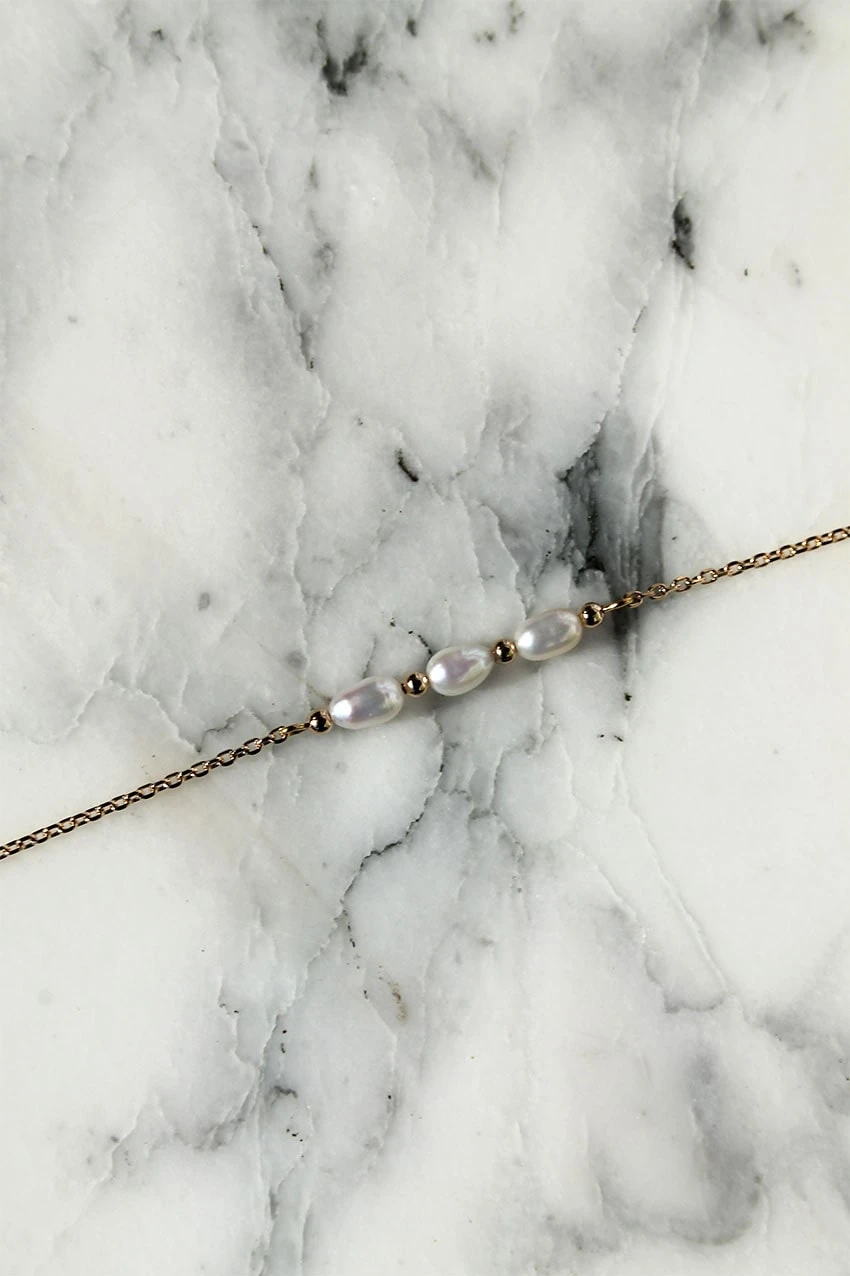 - Bracelet en plaqué or 3 microns accompagné de 3 petites perles d’eau douce