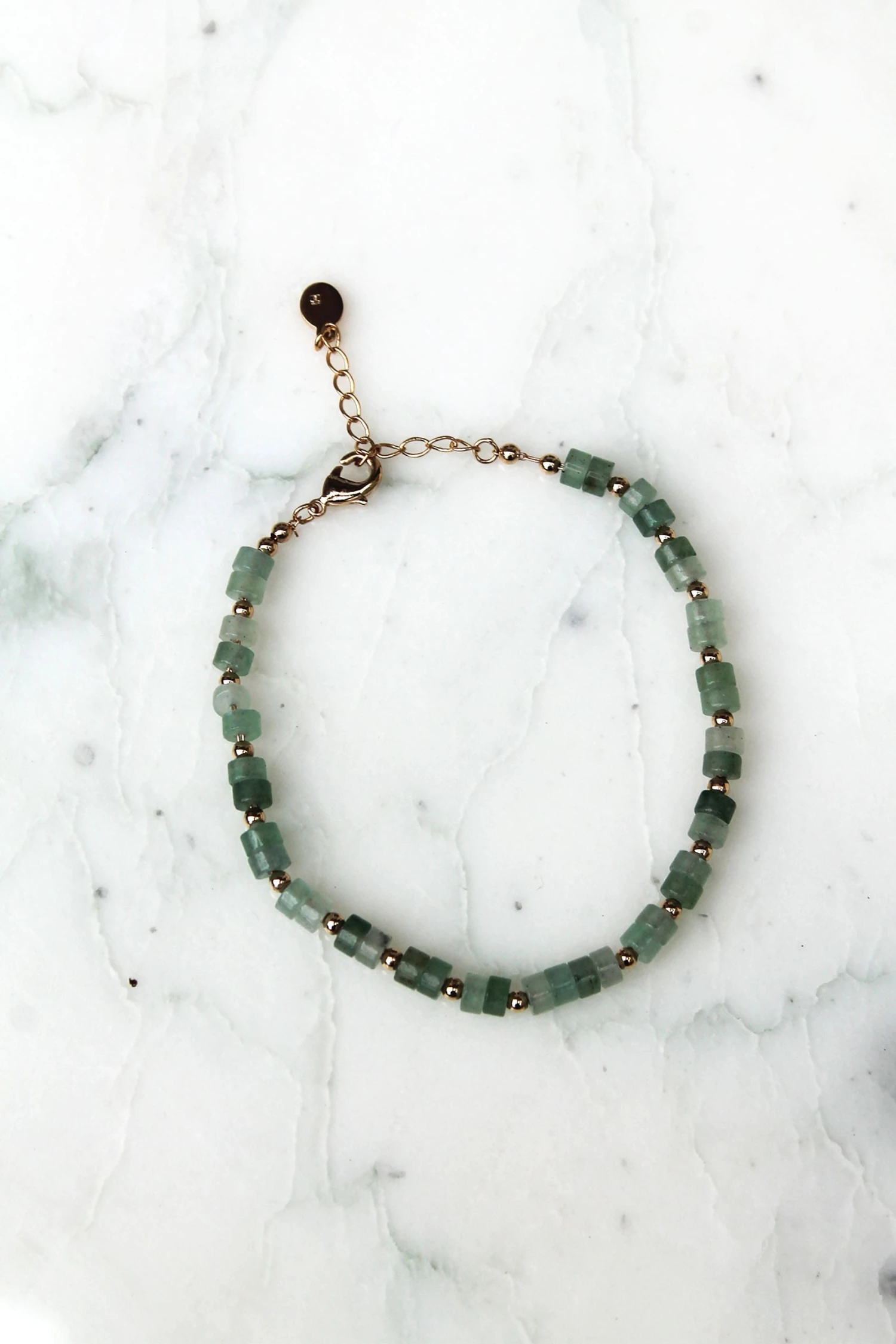 - Bracelet fin en plaqué or et quartzite verte