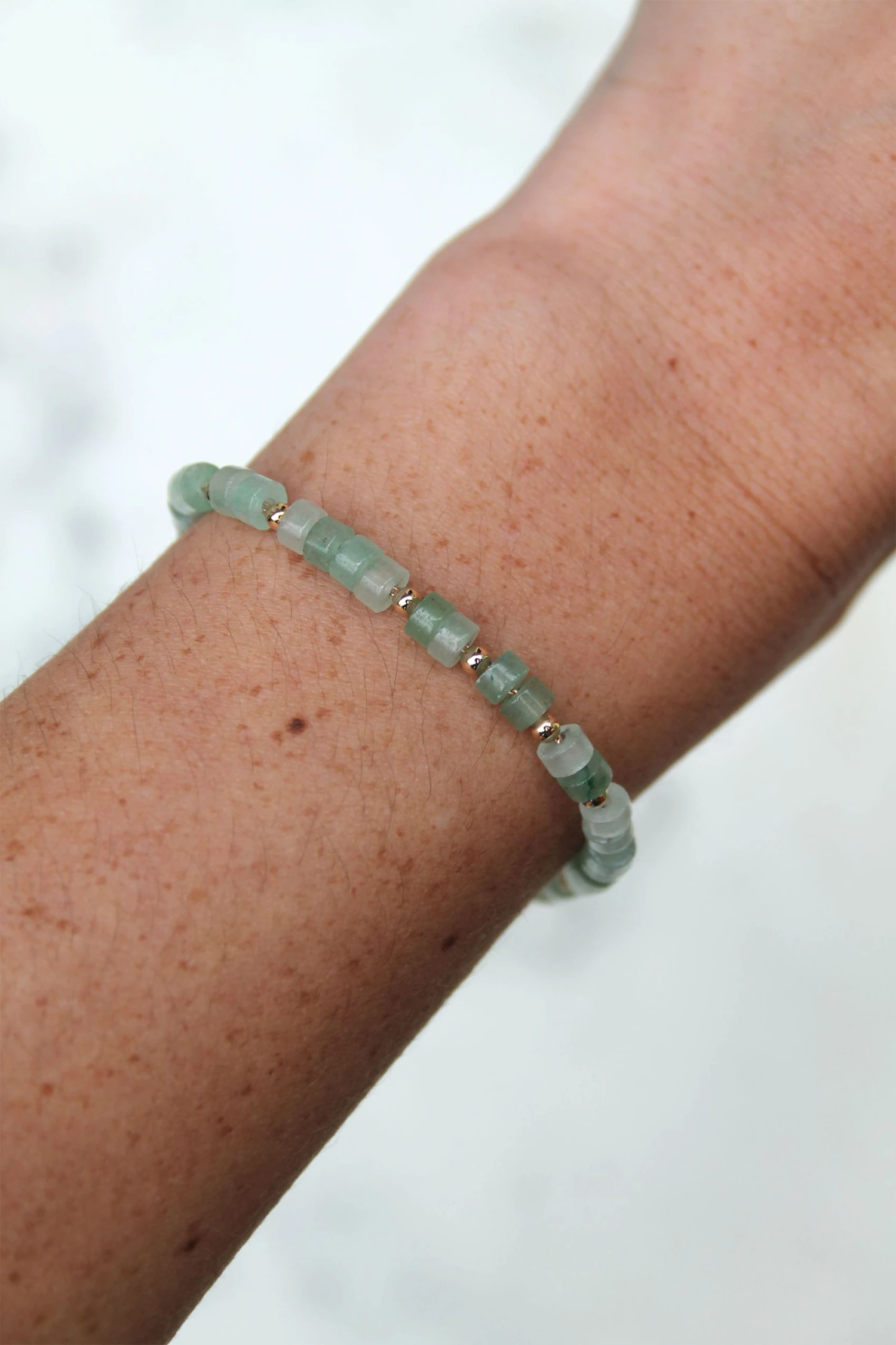 Le ravissant bracelet Oria s’accompagne de perles plates de quartzite vert. On adore le message de cette pierre naturelle, qui remplace les sentiments de complexes et d’autocritique par de l’estime de soi et de la confiance ❤️