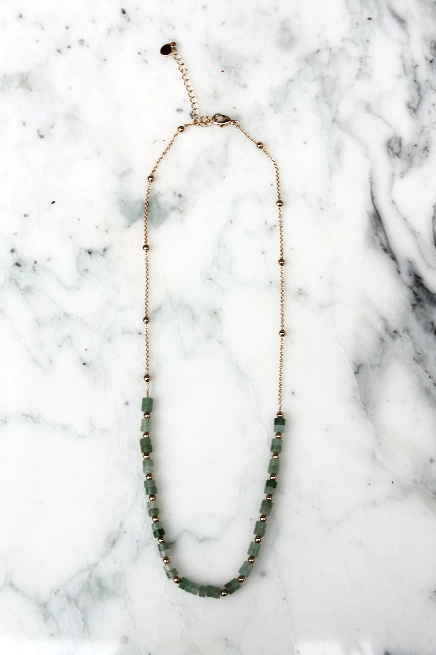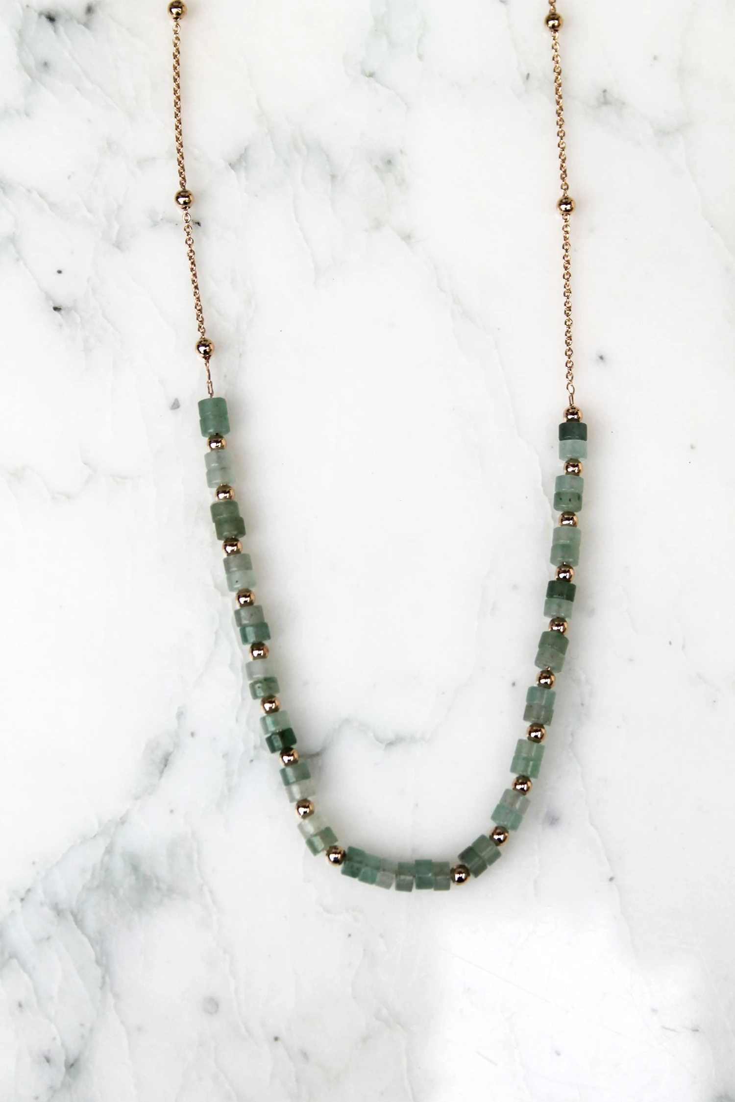 Le ravissant collier Oria s’accompagne de perles plates de quartzite vert. On adore le message de cette pierre naturelle, qui remplace les sentiments de complexes et d’autocritique par de l’estime de soi et de la confiance ❤️