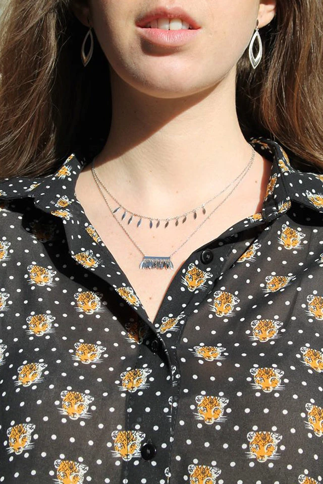 Le collier Pipa est un incontournable qui habillera votre tenue avec élégance et discrétion. On aime en particulier le porter accumulé avec d’autres colliers, comme le Mohave qui est orné des mêmes pampilles !