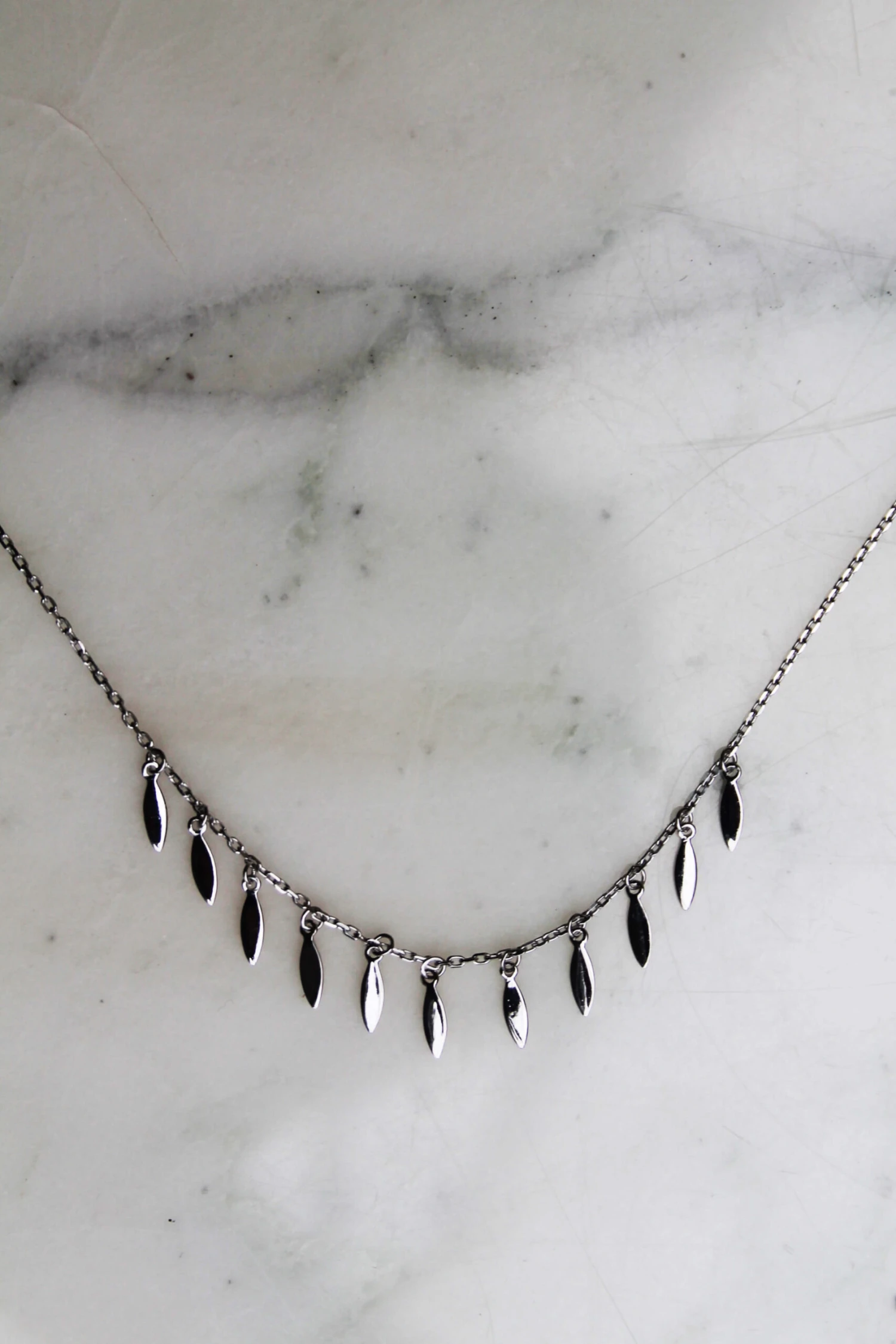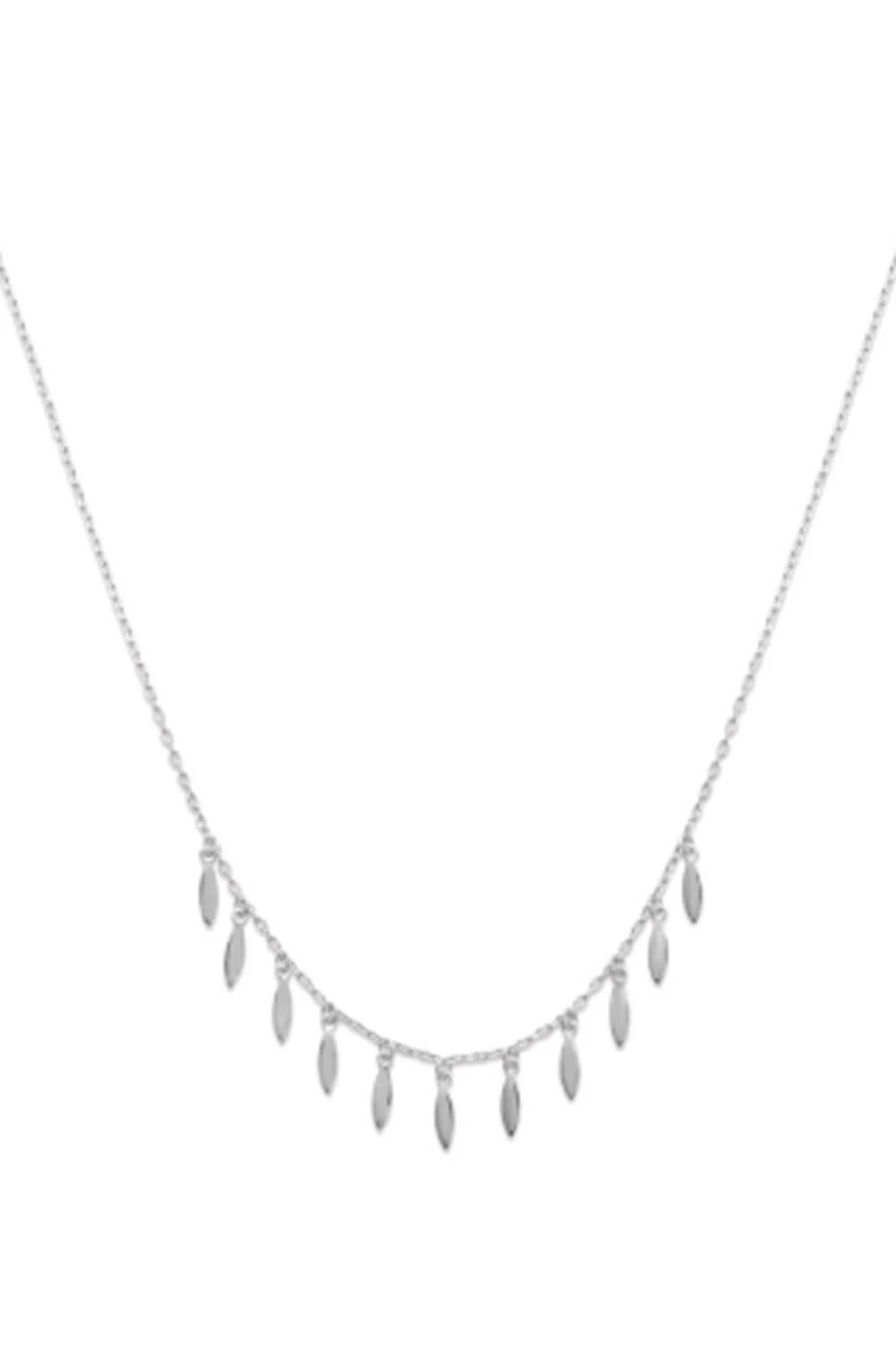 - Le collier se compose de pampilles accrochées à une chaîne en argent