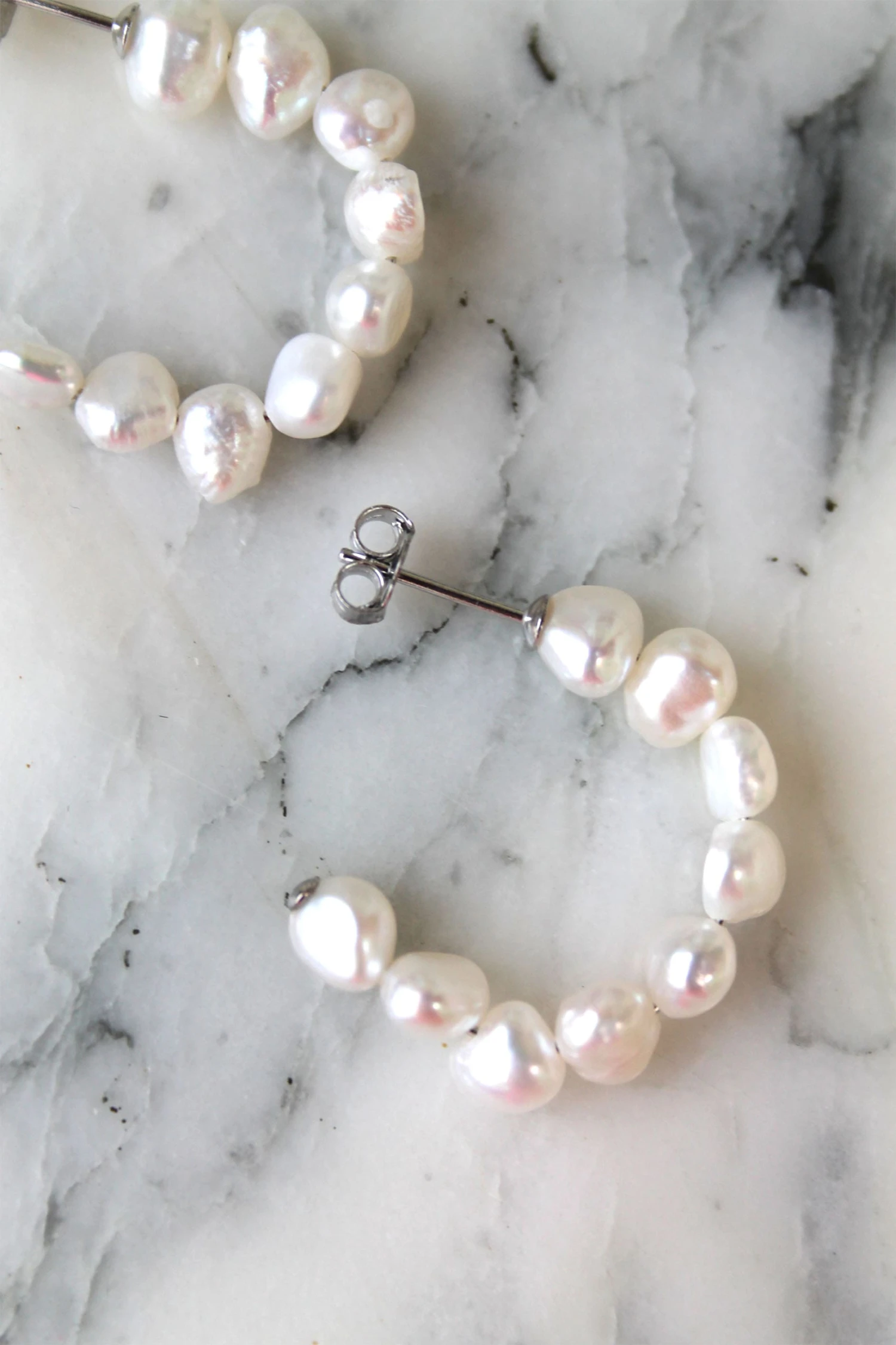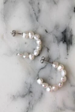 - Boucles d’oreilles créoles en argent massif et perles d’eau douce