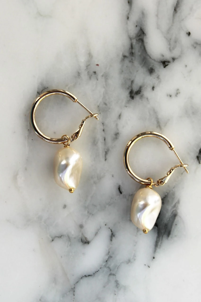 Les perles subliment n’importe quelle tenue, et encore plus lors des beaux jours. Féminines, délicates et pleines de vie, elles viennent ici décorer des créoles en plaqué or pour un résultat très élégant et très baroque.