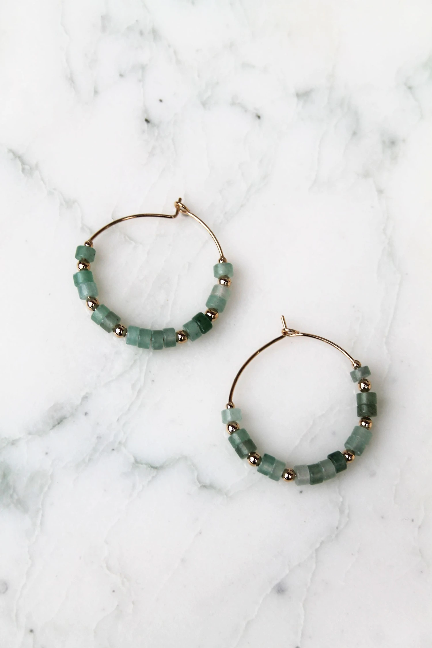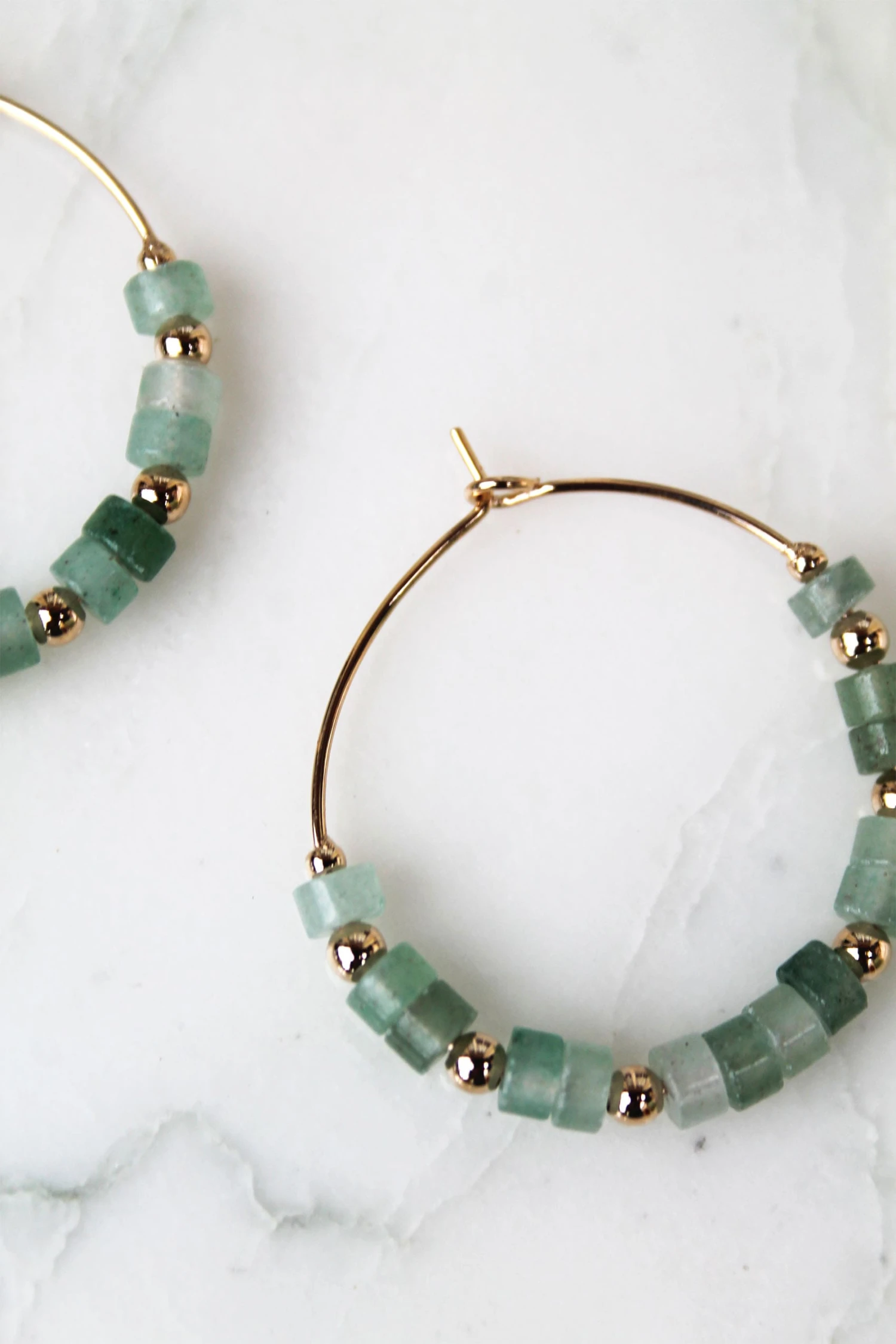 - Boucles d’oreilles créoles fine en plaqué or et quartzite verte