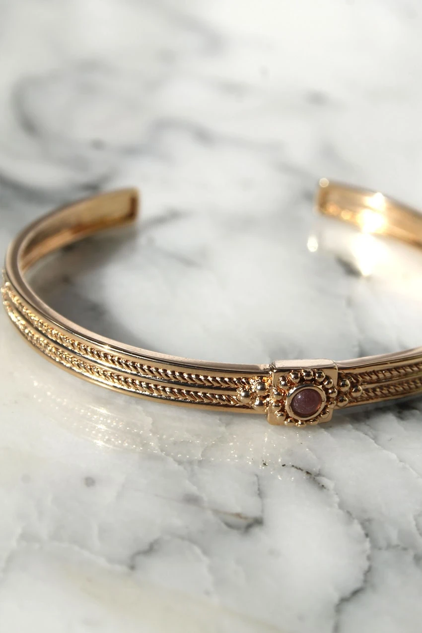 - Bracelet jonc en plaqué or 3 microns accompagné d’une petite perle de verre