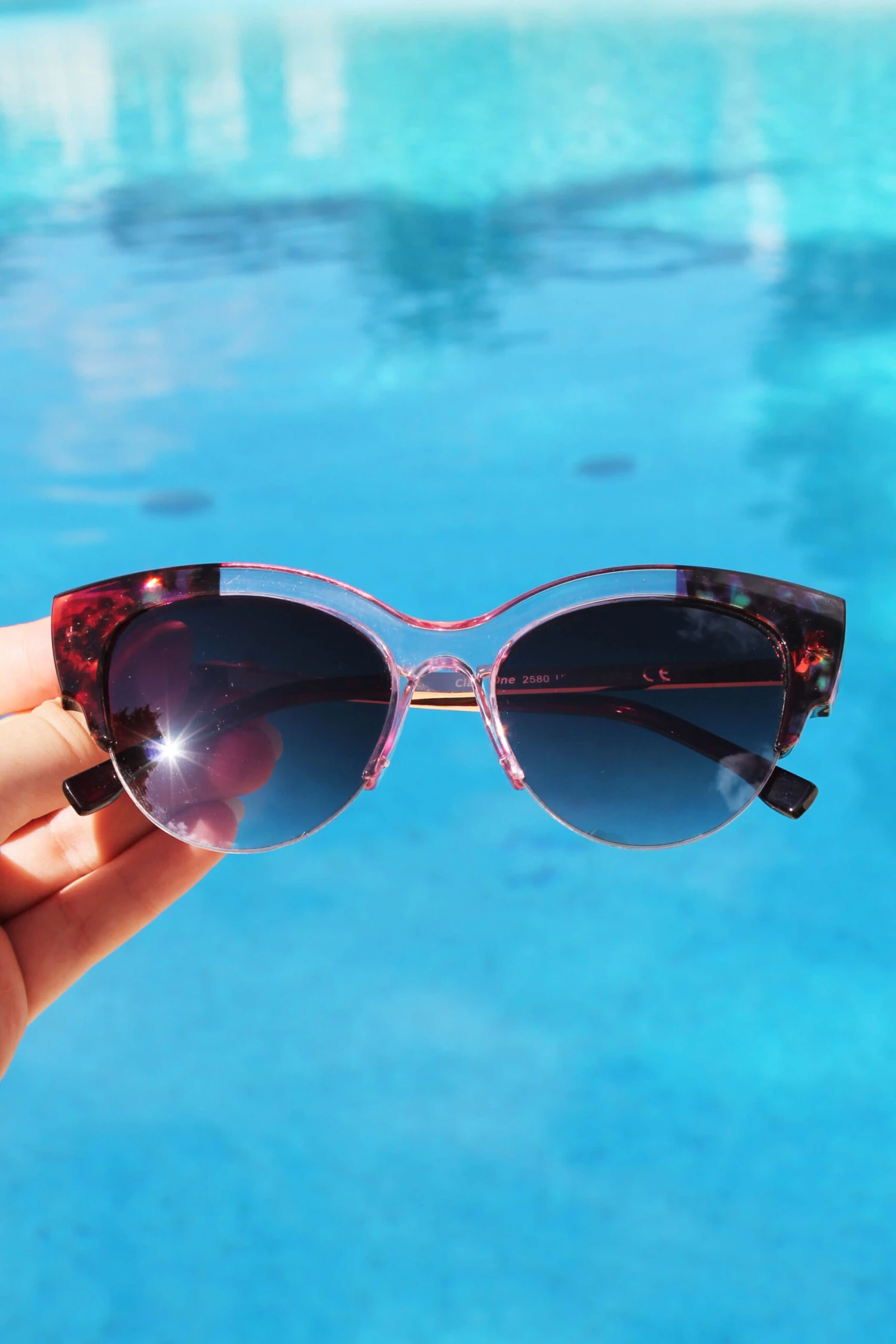 - Monture en plastique transparent rosé, de style écailles