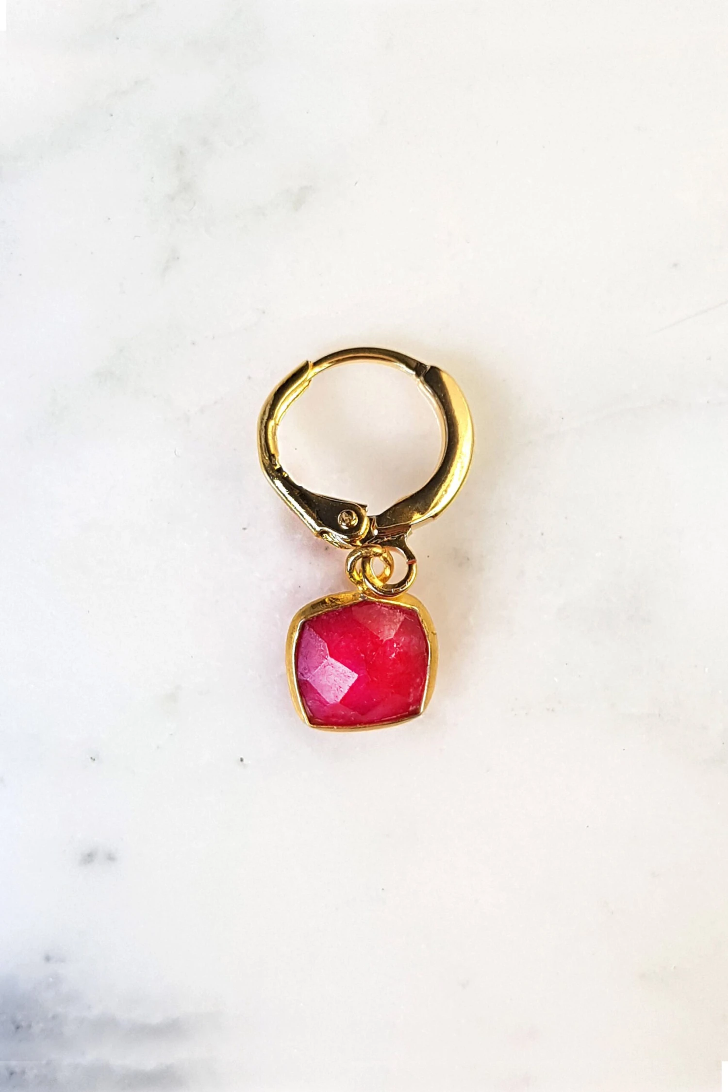 Les jolies mini créoles Bahia sont la touche de couleur qu’il manquait à notre oreille ! Avec sa petite pampille en pierre naturelle facettée, Bahia vient compléter à la perfection notre assortiment de mini créoles ! Ici, c’est de la racine de rubis qui est utilisée, une belle pierre opaque d’un rose rouge framboise. Symbole de charité, d’amour, de loyauté et de bonheur, le rubis fera de votre mini créole Bahia une véritable petite amulette !