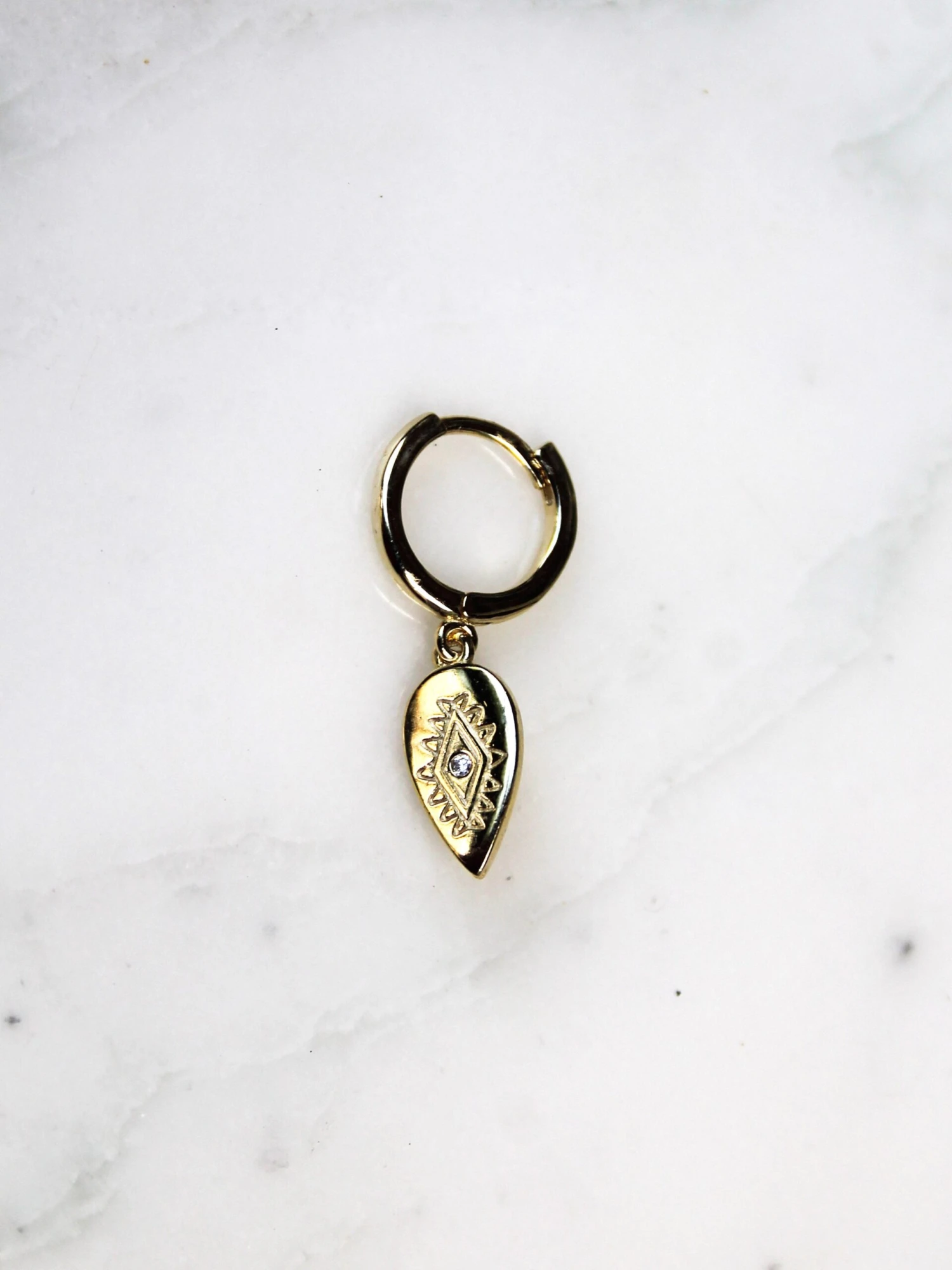 - Boucle d’oreille mini créole en argent 925 plaqué or avec une pampille style ethnique